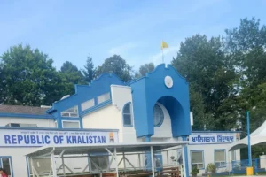 കാനഡയിലെ സറേയിലുള്ള ഒരു സിഖ് ഗുരുദ്വാര, ഖാലിസ്ഥാൻ എന്ന പേരിൽ ഒരു പ്രത്യേക സിഖ് രാഷ്ട്രം സൃഷ്ടിക്കുക എന്ന ആശയത്തെ പിന്തുണയ്ക്കുന്ന ഒരു പ്രതീകാത്മക "ഖാലിസ്ഥാൻ എംബസി"...